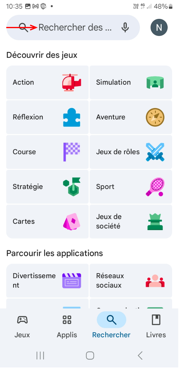Cliquez sur la barre de recherche en haut de l'écran, tapez "Doctolib" puis valider la recherche.