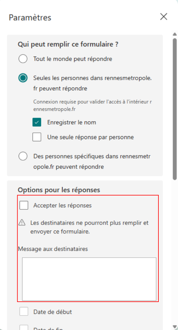 - Décochez la case Accepter les réponses