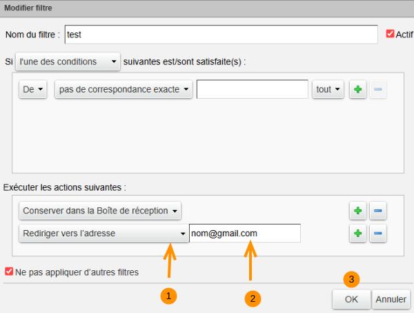 2- Dans le champ libre renseigner l'adresse mail de redirection