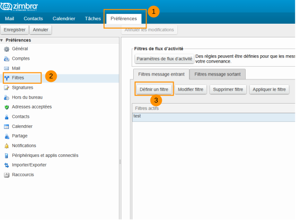 Rediriger des mail depuis Zimbra Webmail