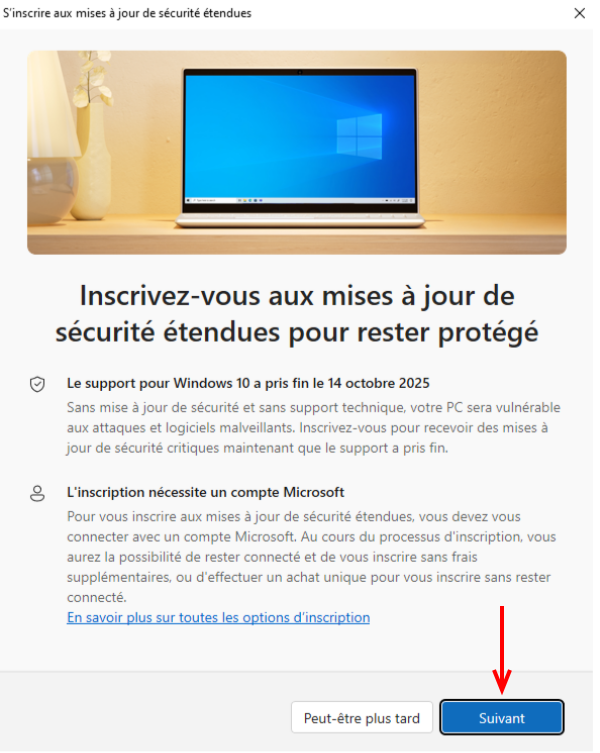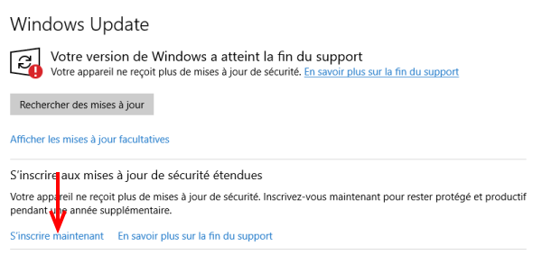Cependant, Windows propose depuis peu, un programme de prolongation des mises à jour de sécurité (ESU) gratuit.