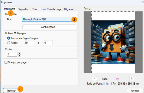 2. Puis, dans la barre déroulante, sélectionnez "Microsoft Print to PDF"