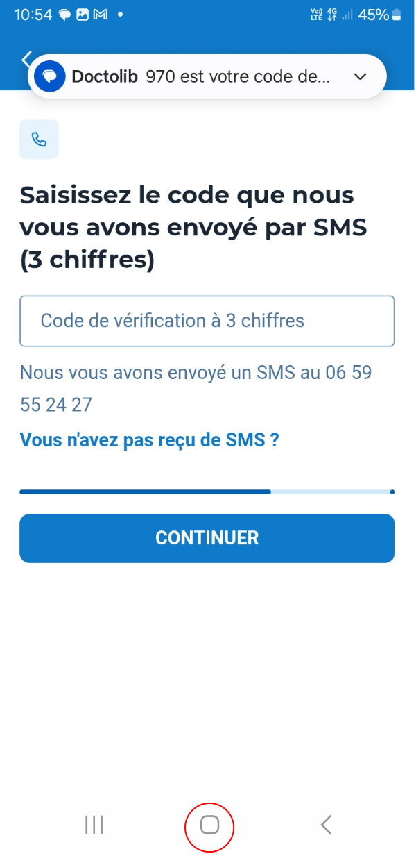 Recopier le code de vérification reçu par SMS. Pour aller le chercher :
