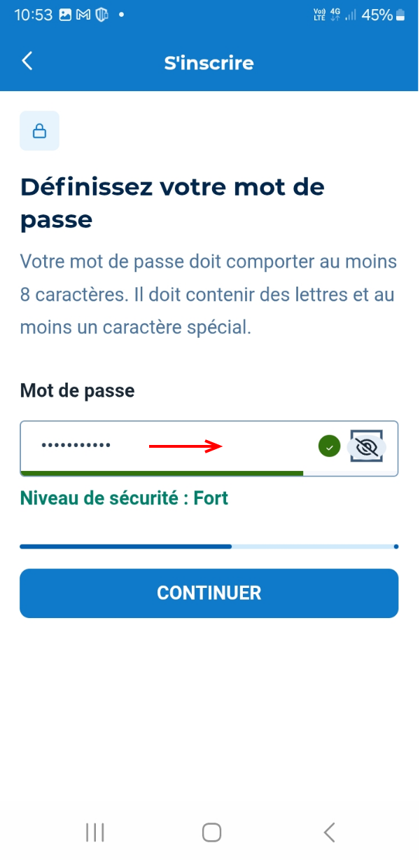 Renseignez un mot de passe qui contient au minimum 8 caractères dont au moins un caractère spécial.