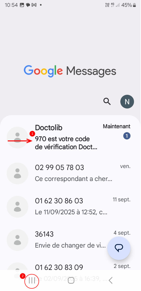 1- Rendez-vous dans vos SMS et retenez ou écrivez vers vous le code.